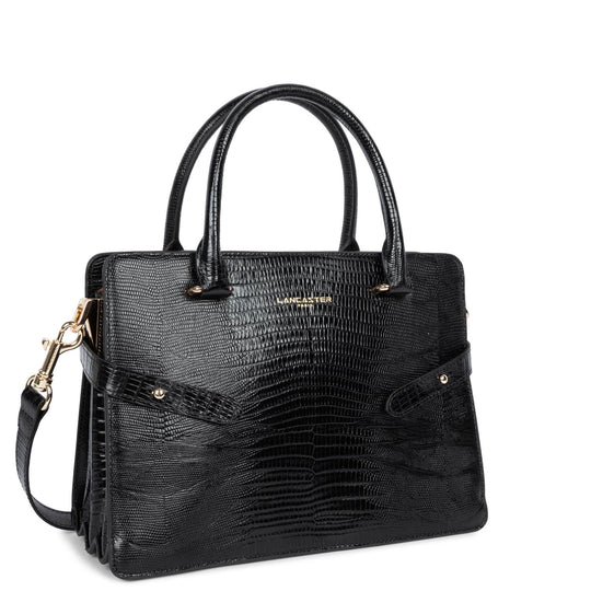 Marque : Lancaster Ligne : Exotic Philia Forme : Sac à main Dimensions : 28cm (l) x 20cm (h) x 11cm (p) Référence : 524-95 Matière : Cuir de vachette grainé Porté : Porté main ou porté travers/épaule avec la bandoulière Fermeture : Zip Le sac se compose de deux compartiments séparés par une poche zippée