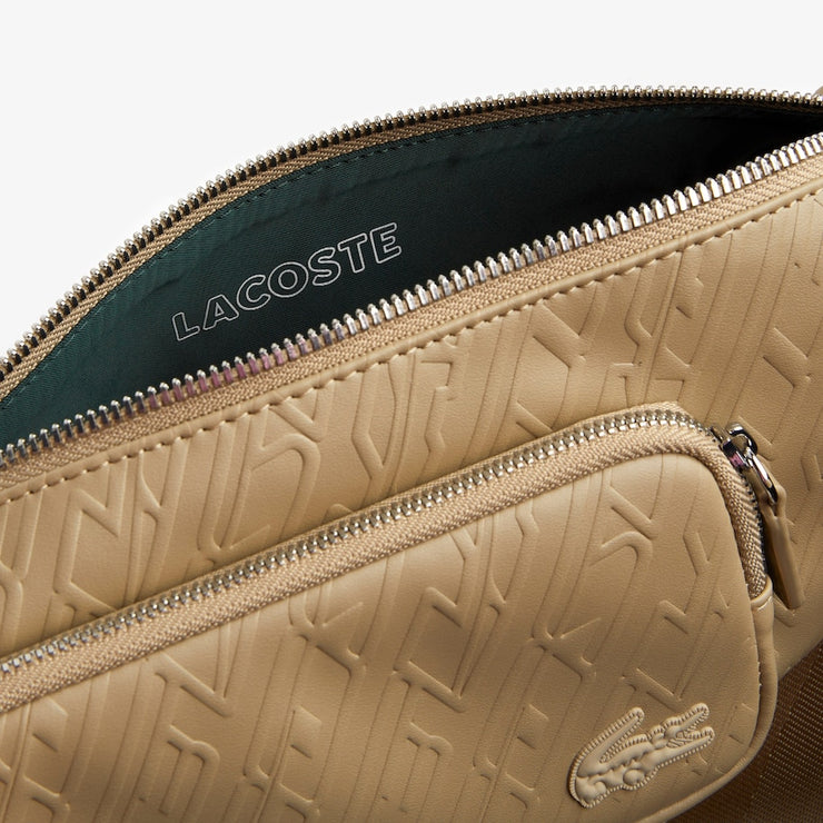 Sac Lacoste à imprimée avec une bandoulière ajustable, une poche zippée extérieure .
